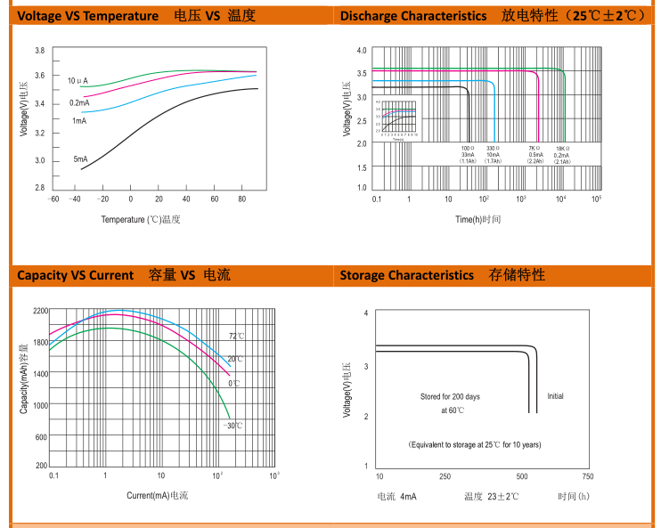 产品型号:ER17335 IEC型号: 2/3A 额定电压(V):3.6 重量(g):20 标称容量电流(mAhmA): 1900 最大持续放电电流(mA):50 工作温度(℃):-55~+85 终止电压(V):2.0 ER17335产品规格书下载